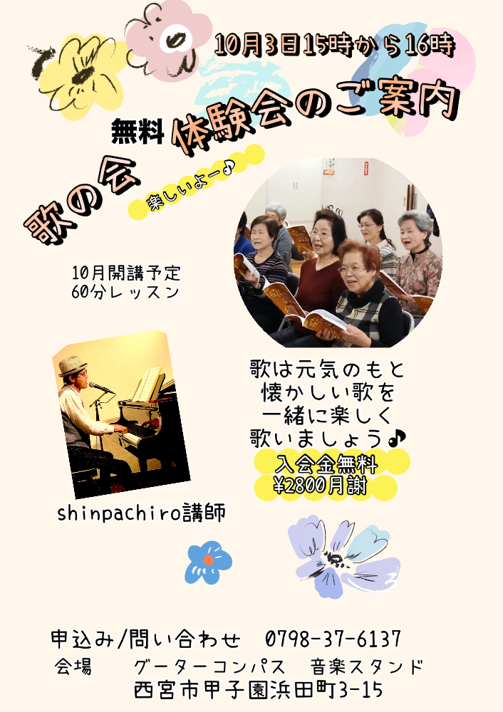教室名 | シニアのための歌の会 懐かしい青春popsをみんなで楽しく |